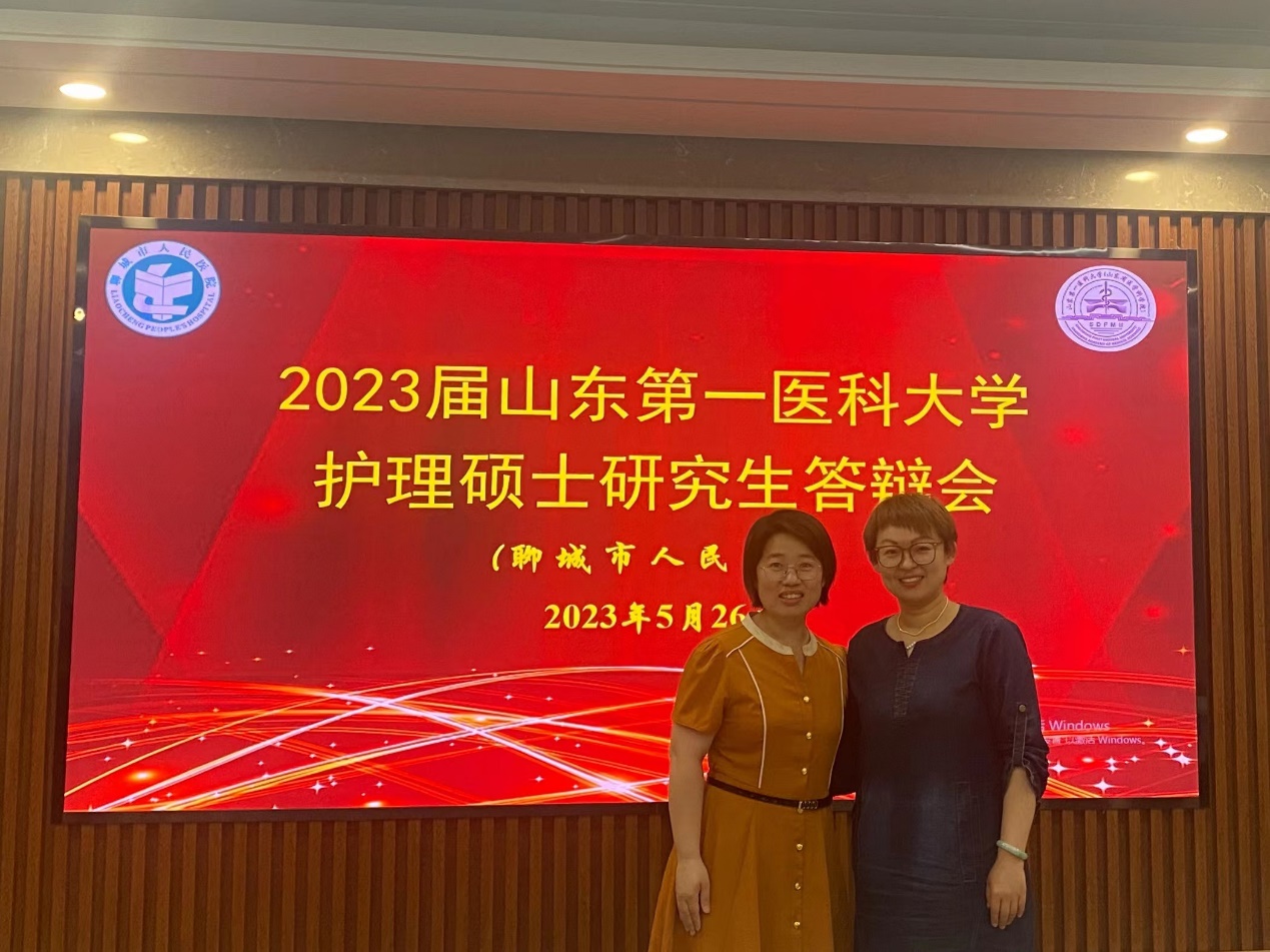 王丽、杨茜茜作为山东第一医科大学护理学硕士研究生答辩会委员,参加了2023年5月26日上午八点在聊城市人民医院402会议室举行的答辩会。