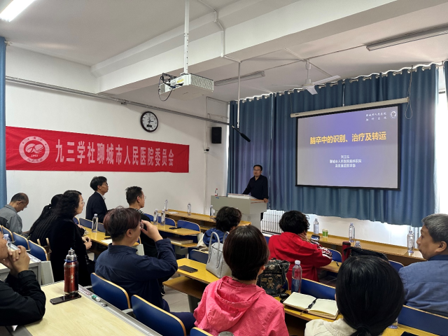 活动中,九三学社社员、聊城市人民医院脑科医院急危重症医学部主任刘卫东围绕脑卒中的预防、早期识别和转运,通过专题讲座、播放急救宣传片等灵活多样的形式,用通俗易懂的语言为老师们开展了科普讲授。