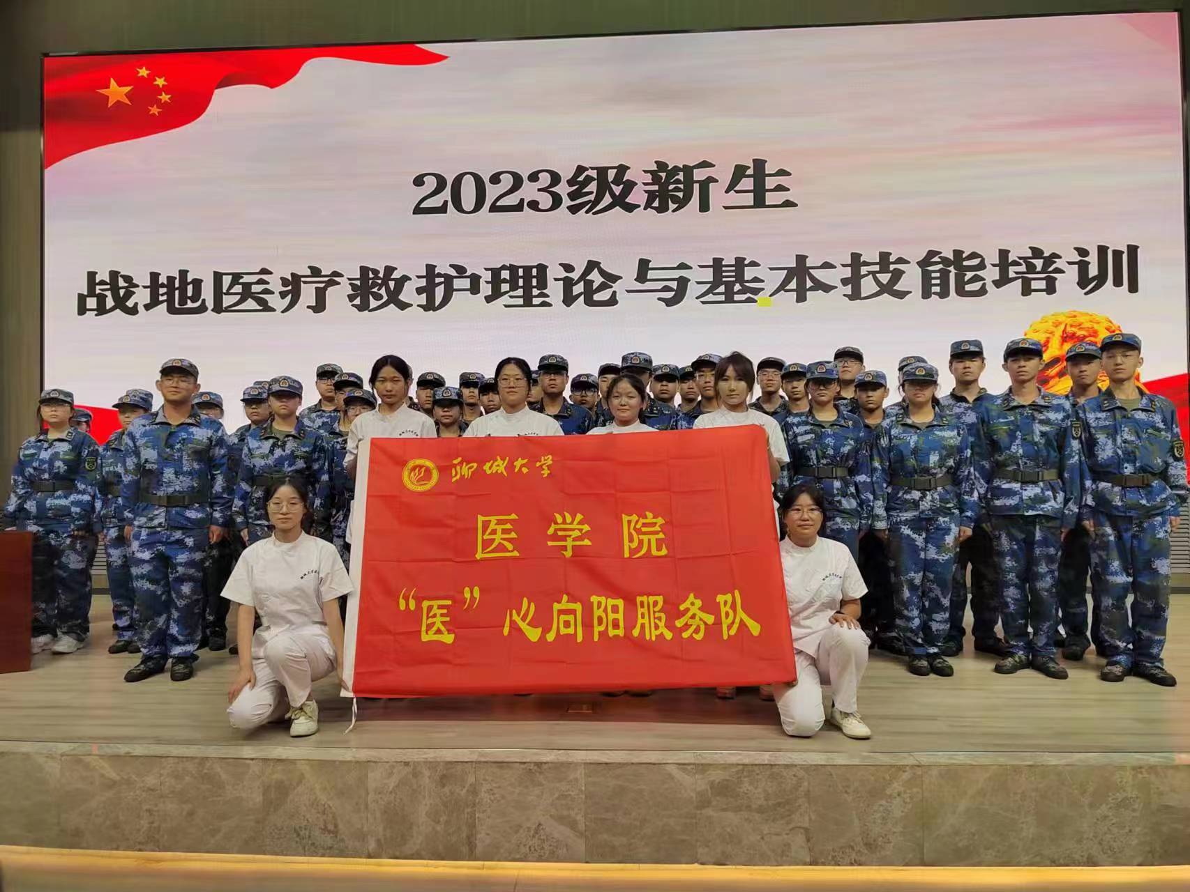 “医”心向阳青年志愿服务队联合校医院于实训楼报告厅开展2023级学生战地医疗救护理论与基本技能培训公开课。