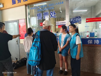 活动当日,志愿者们身着统一蓝色马甲,早早来到聊城汽车总站,并积极调整状态、投入服务。在安检区域,志愿者们看到拖大件行李的旅客时,他们快步上前,帮助旅客将沉重的行李箱放上安检传送带,还贴心提醒旅客拿好随身物品,引导他们有序通过安检,让繁琐的安检流程变得顺畅高效。面对不熟悉自助售票机操作的老年人,志愿者们放慢语速,一步步教老人点击屏幕、输入信息、选择班次。付款时,志愿者们仔细核对金额,并双手将车票递给老人,反复叮嘱乘车时间和检票口。遇到问路的旅客,志愿者们凭借提前“踩点”熟悉的车站布局,精准指引。他们热情的态度、专业的服务,成为车站里一道青春靓丽的风景线。“在遇到困难时,志愿者们积极为我查明原因,并指引方向,让我体会到了家乡的温暖。”一位旅客说道。