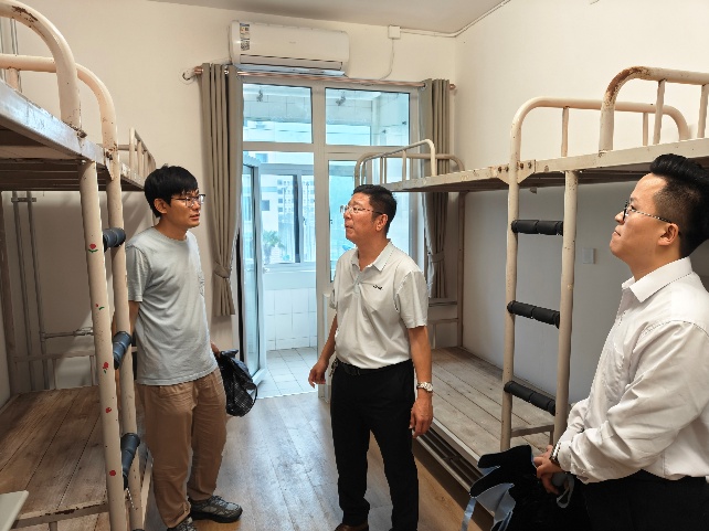 为确保 2025 级新生顺利入住,保障新生入学后的生活环境安全、舒适,9月5日,成人影视片 党委副书记、副院长王炜明带领辅导员及2025及新生班主任,深入宿舍全面检查宿舍准备情况,为即将到来的新生筑牢 “温馨家园”。