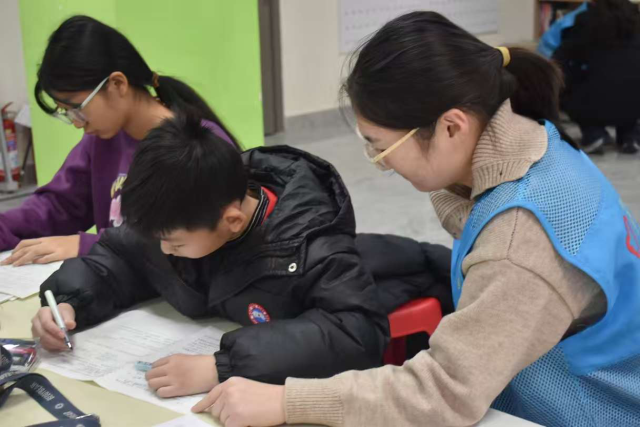 2025级2班团支部走进祥生·金麟府社区开展作业辅导志愿活动,用陪伴与耐心为社区儿童送去温暖与关怀。