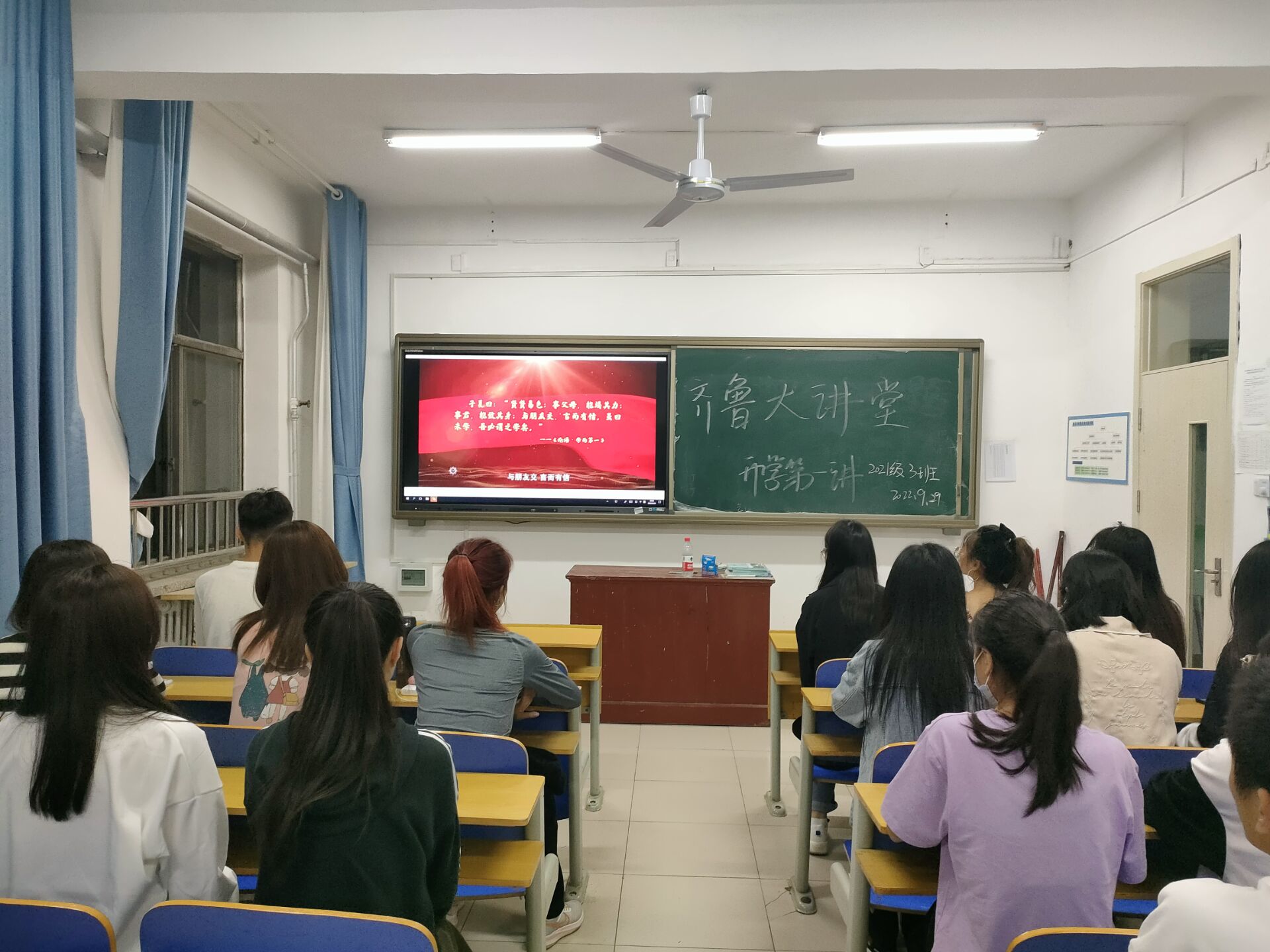 积极响应习近平总书记的号召,组织全体辅导员和学生收看《齐鲁大讲坛——开学第一讲》。