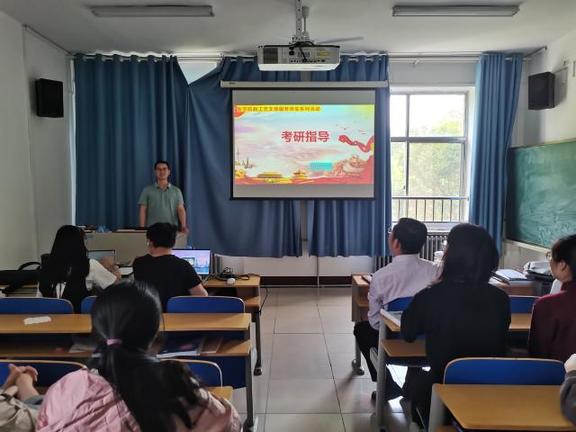 教工党支部于一号办公楼315开展服务师生系列活动之考研指导,学院党委副书记王炜明、教工党支部书记陈坤、教师马帅和各级学生代表参加活动。