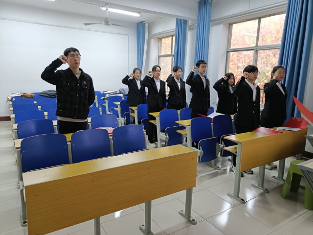入团仪式在庄严的国歌声中拉开帷幕,李孝杰宣布新团员名单,并向新团员示以诚挚的祝贺。李孝杰为新团员颁发了团员证和团徽,寓意着他们成为了共青团大家庭中的新成员,将肩负起新的历史使命。伴随着一声全体起立的口令,新老团员在李孝杰的带领下面向团旗,高举右手,庄严宣誓。张业开宣读有关团员权利和义务的条款,随后,新、老团员代表依次进行发言。李孝杰进行讲话,他向新团员强调:“加入中国共产主义青年团,不仅仅是一种荣誉,更是青春路上的一座重要里程碑,它标志着成长与蜕变。入团,不仅仅是一个简单的身份转变,更是一份责任和担当的开始。”在全体团员奏唱团歌的嘹亮歌声中,仪式进入尾声。