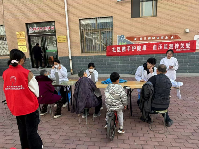 2023级1班、4班、2024级5班走进和平社区进行测血压活动。