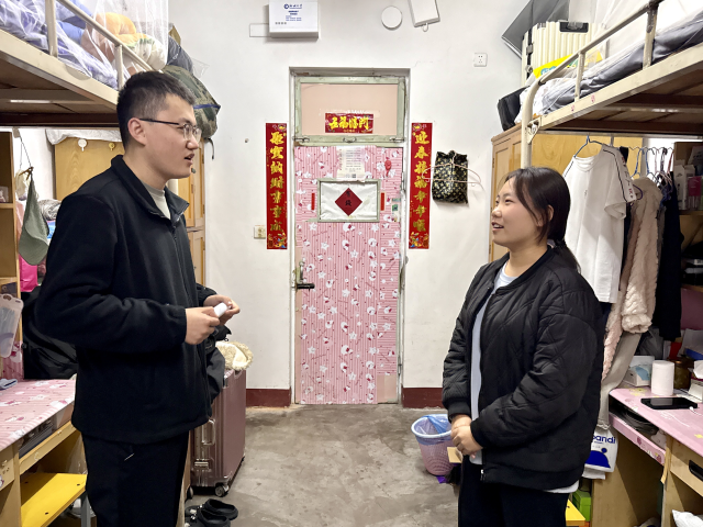 在走访过程中,冯昌顺与同学们展开深度的交流互动,根据同学们的情况,进行针对性的谈话,深入了解同学们内心的所思所想以及当前学习、生活过程中遭遇的困扰与不便之处,并给予契合的解决方案。同时,冯昌顺通过探讨日常生活为话题,拉进与同学们的距离,使得同学们能够各抒己见,畅所欲言,表达自身见解,吐露心中烦恼。在此过程中,冯昌顺记录了解了同学们的实际状况,并给予了积极的建议与指导,激励同学们奋勇向前,砥砺前行,使同学们对未来有了更加清晰的规划。“此次宿舍走访,让我切身的体会的学院对我们的关心与高度重视,我将不负学院的期待,更加努力学习。”一位同学说到。