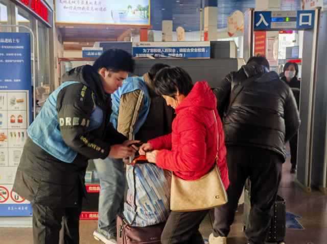 志愿情暖意,爱心梦盈途。活动当日,志愿者们早早地抵达汽车站,并迅速进入各自岗位。在售票处,当遇到不熟悉自助购票流程的旅客时,志愿者们会默默站到一旁,伸出手指,一边温柔细致地讲解,耐心引导;一边手把手,协助旅客一步步完成操作,帮助他们顺利购票。在面对老年人群体时,志愿者们会耐心地询问老人的车次信息,还贴心地为老人讲解候车的注意事项,确保老人能够安心候车。检票区域,对于行动不便的老人、儿童以及一些身体不适的旅客,志愿者们总是会给予额外的关注,当看到他们手提沉重的行李,吃力地走向检票口处时,志愿者们会立刻快步走上前去,然后小心翼翼地接过行李,确保每一个顾客可以顺利踏上旅途。志愿者们用自己的细心、爱心和耐心,在候车区域编织了一个充满温情的大网,将每一个需要关怀的特殊群体都温柔地包裹其中,让他们在候车的过程中感受到家一般的温暖。