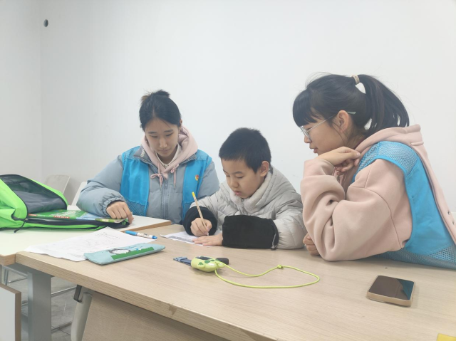 活动开始前,志愿者们提前抵达社区活动室,分成多个辅导小组,每组对接一名学生,提前布置桌椅,营造出温馨有序的学习环境。辅导过程中,志愿者们通过“查、问、析”三步法,先检查学生作业完成情况,根据学生情况有序安排作业辅导顺序,再针对薄弱环节进行专项讲解,对学生疑惑的部分不同的方法讲解,最后结合错题梳理知识框架,帮助学生建立知识体系。面对复杂的数学应用题,志愿者用画图演示帮助理解题意。活动结束后,志愿者们逐一检查作业质量,确保“疑难问题不过夜,学习任务不积压”。“分组辅导让我更清楚学生的个性化需求,看到他们面对难题时从皱眉到豁然开朗的表情,特别有成就感。”一位志愿者说道。