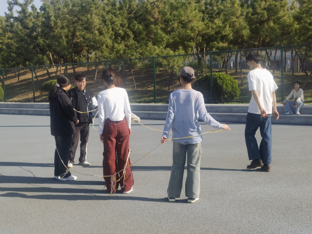 在活动初始,校心理中心研究生助理高震宇作为主持人让大家进行了自我介绍,通过描述对彼此的第一印象,同学们得以初步了解,迅速拉近了彼此间的距离,有效消除了陌生感。同学们参与了 “摆图形” 趣味活动,此活动看似简单,仅需摆出特定形状,实则要求同学们进行明确分工,并具备高度默契的协作能力才能顺利完成;随后,高震宇组织开展了 “猜数字” 与 “传呼啦圈” 等趣味项目。相较于此前活动,这两个项目进一步提升了难度,成功将活动氛围推向高潮。它们不仅对同学们的团队合作能力提出了考验,更要求同学们具备出色的沟通能力。在活动进行过程中,同学们争分夺秒,凭借精准的判断和紧密的配合,一次次通过考验,完成挑战。在整个过程中,同学们互相鼓励、互相支持,在完成图案的那一刻,同学们的脸上洋溢着自豪和喜悦。