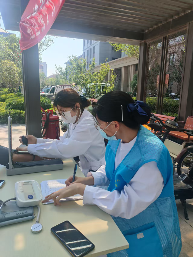活动现场,同学们将一张张桌子摆放整齐,上面放置血压计、听诊器等医疗器具,以及健康宣传资料,勤工助学的同学们迅速分工,各就各位,以饱满的精神状态迎接居民的到来。有的同学负责登记居民信息,仔细询问每一位前来测量血压的居民的身体状况和日常习惯;辅助量血压的同学为居民挽起袖子;还有的同学在一旁耐心地向居民讲解血压数值的含义,以及如何预防高血压等健康知识,用通俗易懂的语言为居民答疑解惑。在量血压的过程中,勤工助学岗同学们不仅展现出了大学生志愿精神,更传递出了温暖与关怀。他们与居民亲切交流,倾听他们的心声,让居民们感受到了浓浓的关爱。对于一些血压偏高或偏低的居民,同学们反复叮嘱他们要注意饮食、适量运动,并建议他们定期到医院进行检查。居民们纷纷点头,对同学们的关心和帮助表示感谢。