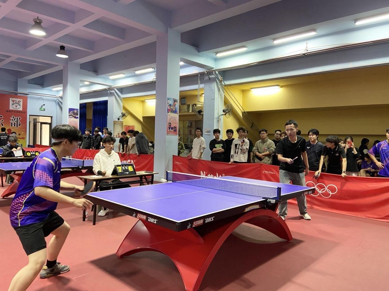 首场战役分别对阵商学院与教育科学学院。赛场上,学子们凝神静气,目光如炬紧盯银球起落,发球时或轻挑短吊布下巧局,或长线奔袭直取要害,指尖控拍间尽是巧思;接球时跨步、并步、交叉步灵动切换,球拍起落如行云流水,每一次挥拍都暗藏千钧之力,尽显日积月累的扎实功底。面对对手的凌厉攻势与节奏突变,他们沉心静气、灵活调整站位,即便陷入多回合胶着对峙,汗水浸透衣衫也始终斗志昂扬。他们攻防转换衔接无缝,接球后迅速衔接快攻、提拉,乒乓球在赛场上划出一道道灵动弧线。双方比分交替攀升、紧咬不放,赛场气氛紧张到窒息,每一次精彩得分都引发全场欢呼,每一次遗憾失分都化作重整旗鼓的动力。从球台边的全神贯注,到回合间的彼此鼓劲,这份迎难而上的拼劲、团结协作的温情,早已超越胜负,成为赛场之上最动人的风景。