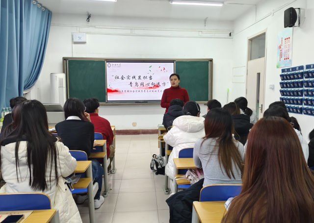史秋波以“社会实践显担当,青鸟同心向远方”为主题,围绕寒假社会实践活动及青鸟计划的核心价值与重要意义展开发言。她强调,寒假社会实践绝非简单的经历填充,而是锤炼实践能力的关键契机——参与实践既能增长见识,更能让同学们在基层服务与岗位实操中,将知识转化为服务本领,让寒假生活充实而有价值。针对同学们参与青鸟计划的实际疑问,史秋波耐心解答:讲解报名流程与简历投递的核心要点,结合专业特色分享简历优化技巧,通过展示优秀简历为同学们提供参考。史秋波倡议同学们要把握社会实践与青鸟计划的机遇,在实践中积累经验、服务社会,在实干中实现自我价值,于知行合一中完成成长蜕变。