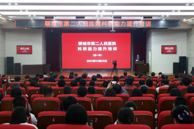 科技处副处长刘冰一行前往聊城市第二人民医院就科研工作进行交流,并开展科研培训活动。聊城市第二人民医院院长夏章勇,副院长张铁铮,医院各临床医技科室科主任、护士长、科研秘书、博士、护理科研小组成员共计300余人参加了培训。