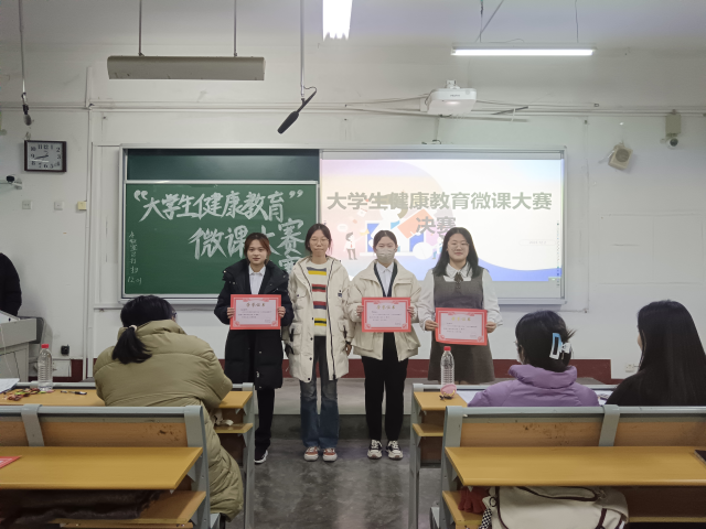 第一环节,参赛选手们娓娓道来,微课内容丰富详实,凭借着对艾滋病、牙腔疾病、高血压、中药等相关知识的了解,选手们围绕主题层层推进,深深的吸引了观众们的目光。在观众的掌声中,激烈的第二环节拉开序幕。参赛选手需要选择医学知识题组并回答,本环节不仅考验着参赛者对知识的了解程度,同时也在检验同学们的现场口语表达能力。参赛者选手们展现出从容的态度、流利的表达能力与丰富的知识储备,在现场氛围的带动下,不少同学对健康知识产生了浓厚的兴趣。比赛结束后,评委们从参赛选手的教学教态、语言表达、PPT设计和教学过程等方面进行评分并对各位选手的表现进行了客观的点评,经过充分的讨论,分别评出此次大赛一等奖、二等奖及三等奖的人选并为选手颁发相应证书。具体获奖名单如下:一等奖刘芳;二等奖徐云菲、尚乐鑫;三等奖王彩月、翟文钰、杨一梦;优秀奖刘思蕊、彭淇、王菲。