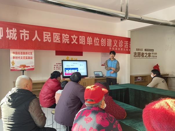 “医”心护齿宣讲志愿团联合聊城市人民医院走进柳园街道鑫鹏社区为居民进行口腔健康宣讲和义诊。