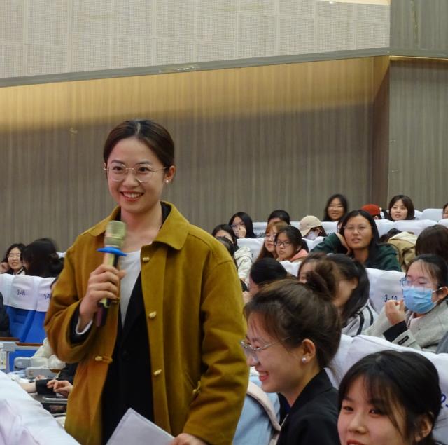 专场招聘会现场,孙永国教授以医院的建设基础和发展现状为出发点,分别从医院的诊疗服务优势、学术研究实力、医学教育职能、医院初心使命、护士职业文化五个方面详细地介绍医院的整体发展概况。他强调护理优秀人才作为打造优质护理服务的重要后备力量,医院始终以人才培养为战略发展目标,以立德树人为根本行动指南,在完善护理管理体系、打造专科服务品牌、组织最佳护理实践、开展护士技能竞赛等方面精益求精、始终如一。王晓云教授以自身经验为切入点,希望每位同学在选择实习单位时能够找准定位,把握方向,在未来能够与心仪的单位携手并肩,齐头并进,逐步发展成为对社会有用的人才。答疑解惑环节,现场同学针对山大二院对护理实习生在薪资、考研、住宿等方面的问题提出自己的疑问,王晓云给予明确的答复。