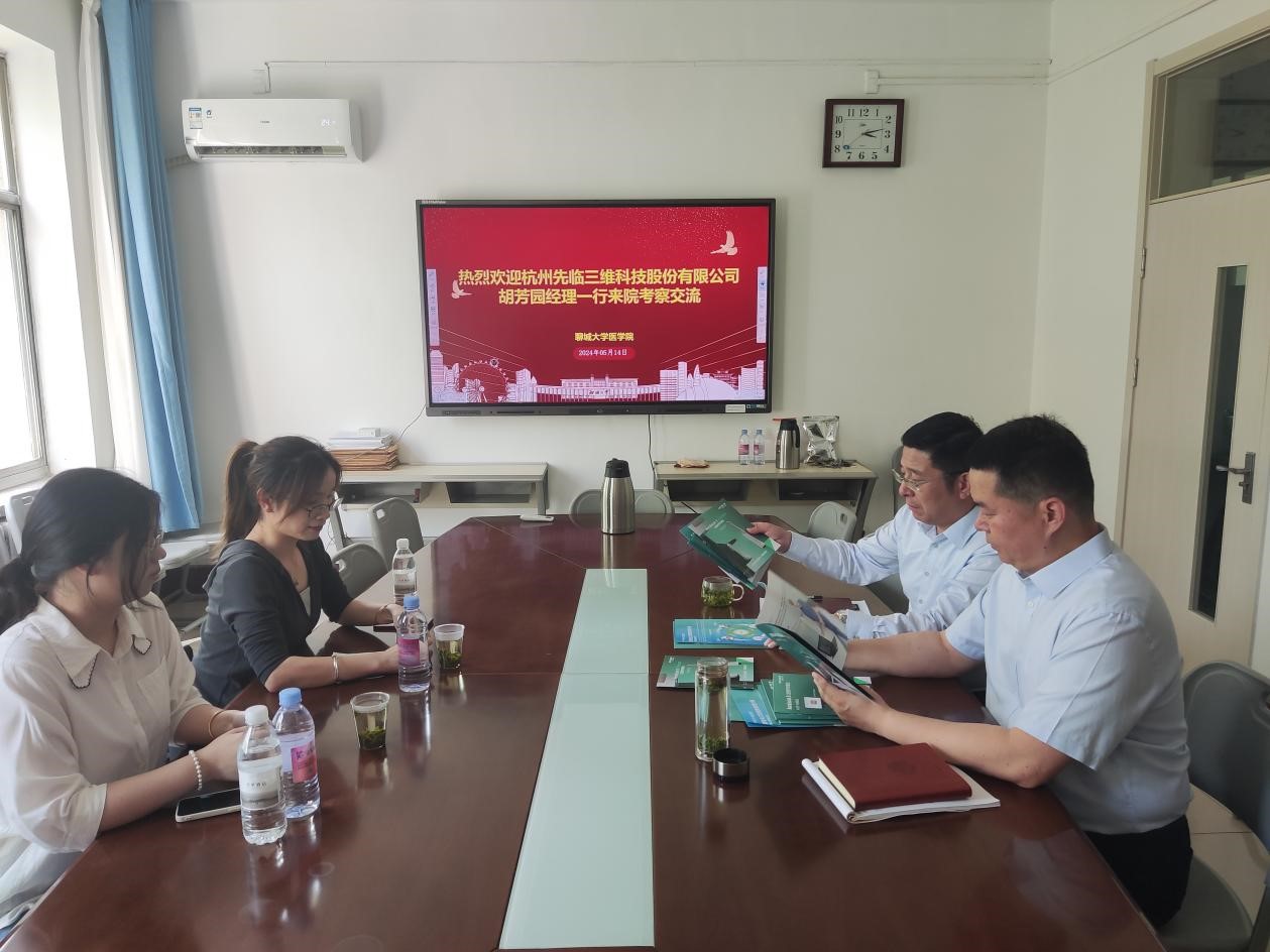 党委书记明辉、党委副书记、副院长王炜明、就业辅导员李孝杰等与杭州先临三维公司人力资源管理中心经理胡芳园一行进行了座谈,共同洽谈了实习就业一体化的相关合作事宜,胡芳园介绍了杭州先临公司的主要产品、项目优势以及人才管理和发展的需求,明辉也对成人影视片