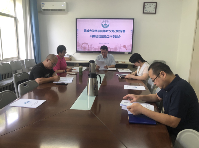 三楼会议室召开科研诚信建设工作专题党政联席会议,专题研究科研诚信建设工作。
