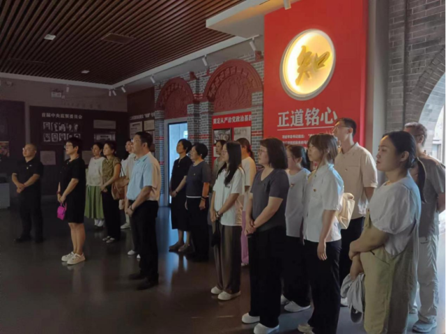 党员们先后有序参观展厅,走上时光的传送带与一个个历史人物发起穿越时空的对话。馆内“廉政”二字在灯光的照耀下格外耀眼,时刻警醒党员干部知敬畏、存戒惧、守底线。党员们通过聆听讲解、观看视频全方位、多角度共同回顾中国共产党推进自我革命的光辉历程,全面了解中国共产党在不同时期反腐倡廉的坚定决心。参观过程中,党员们深受启发,纷纷表示要时刻保持头脑清醒,坚定理想信念,严守党的纪律,以实际行动践行党的宗旨。参观结束后,全体党员面向鲜艳的中国共产党党旗,庄严举起右手,郑重地重温了入党誓词,铿锵有力的誓言在馆内回荡,每一位党员都以饱满的热情和坚定的声音表达自己对为共产主义事业奋斗终身的信念。