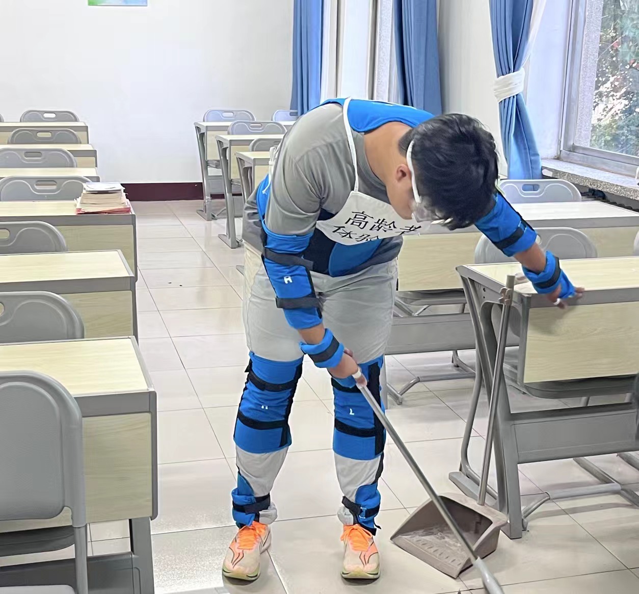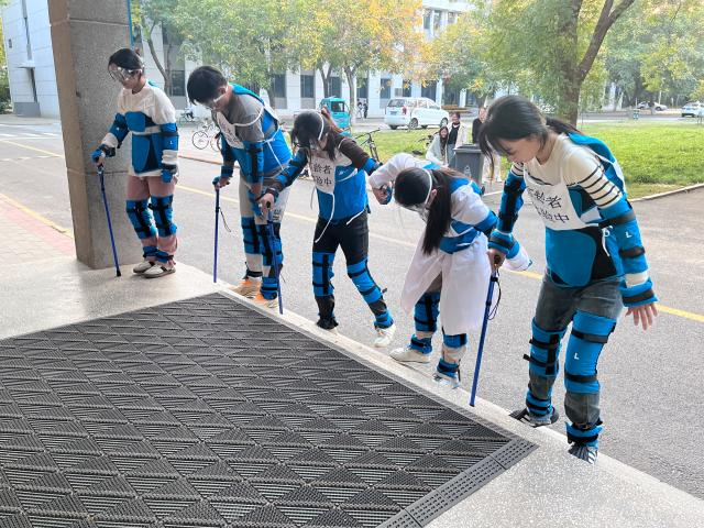 活动现场,工作人员为活动体验者穿上模仿老人的负重装备,用特制的耳塞、特制眼镜,来营造老年人耳背以及远视的环境氛围,让体验者能够切身体验到因身体负荷变化而带来的行走不便和劳累感。随后,体验者深刻的体会了老年人上楼梯、打扫家务以及看报纸时的场景,使同学们对老年人行走慢、反应慢有了更直观的体验,并使他们更加理解到老年人生活中的处处不易。同时,体验者还进行了多个地点、多个场景的体验,他们通过在图书馆、超市等场景进行全方位的感受,使他们深深地体会到“尊老爱老”的重要性。“这次高龄者体验,使我认识到老年人生活的多处不便,让我更加理解老年人,也鼓舞我关爱老年人,敬爱老年人。”一位体验者说到。