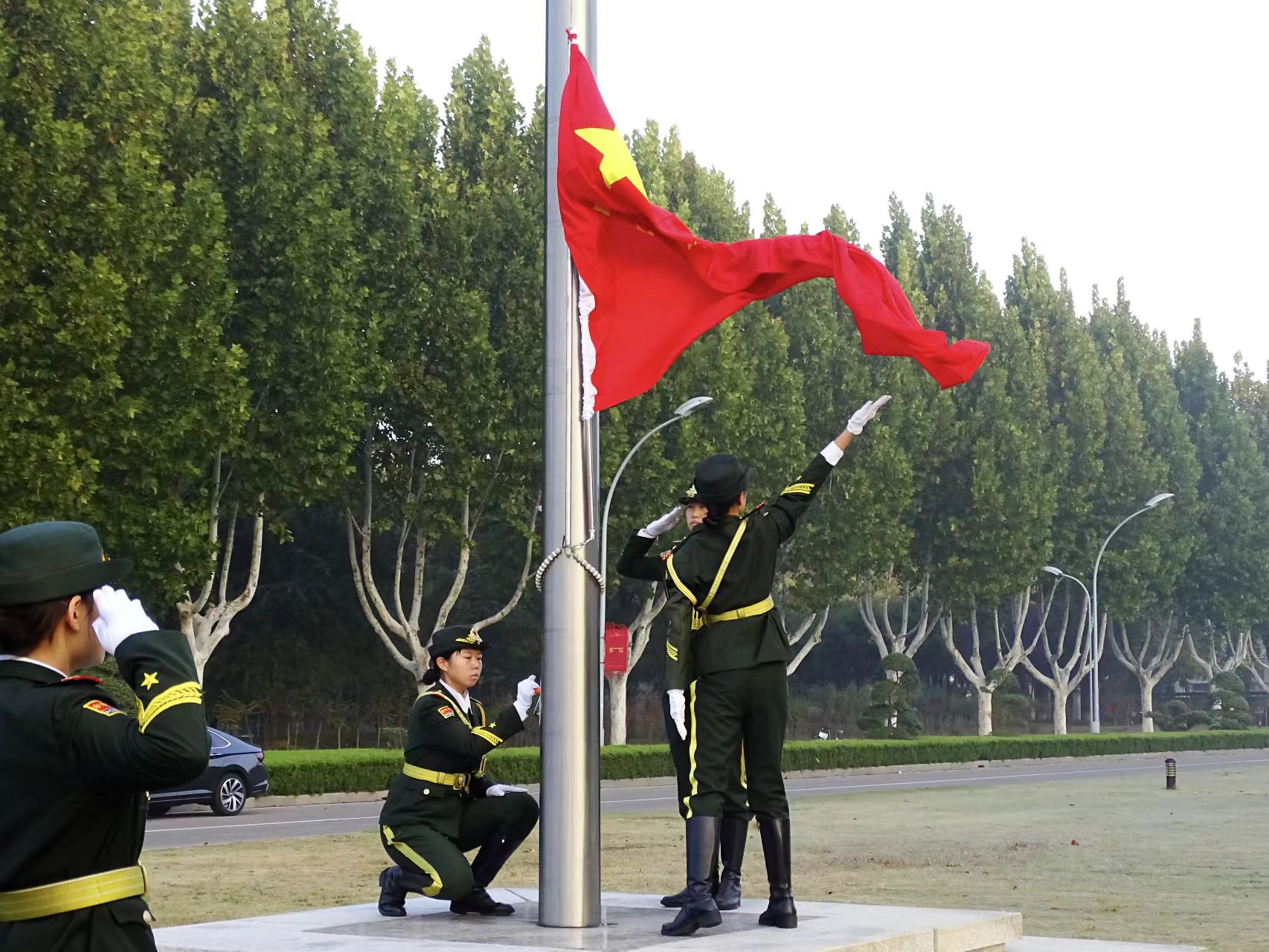 于东校南门广场举行“金秋十月颂祖国,奋斗筑梦新时代”主题升旗活动。团委书记白东芳,辅导员李孝杰、冯昌顺以及成人影视片