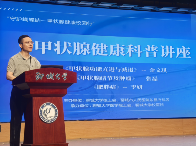 会上,李森强调了甲状腺健康对全身机能的重要性,他说,本次活动内容丰富,涵盖甲状腺健康科普讲座、甲状腺彩超以及血糖免费筛查等项目,期望通过此次科普活动,帮助聊大师生科学掌握甲状腺疾病的相关知识,及早预防甲状腺疾病,增强自我保健意识。