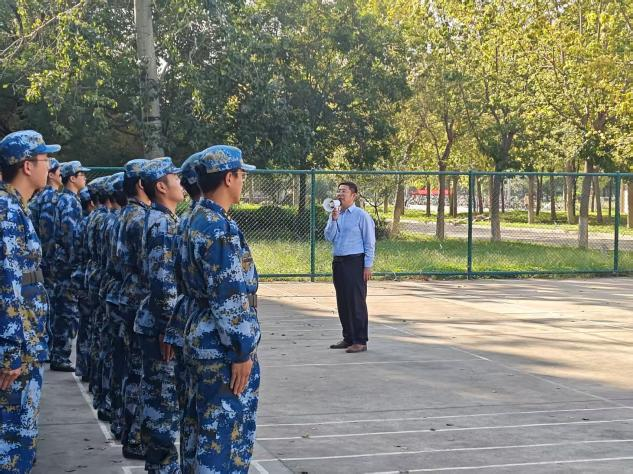 党委副书记王炜明带领学院全体辅导员深入军训现场,与新生和承训教官面对面交流。