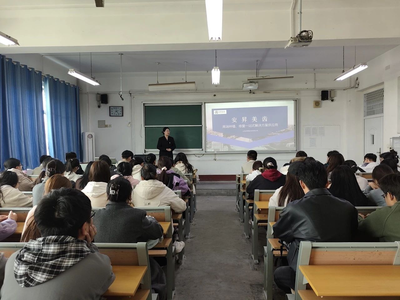 邀请山东安昇美齿科技有限公司经理徐金艳和山东康齿乐医疗科技有限公司经理孙慧为口腔医学技术专业毕业生进行招聘宣讲。